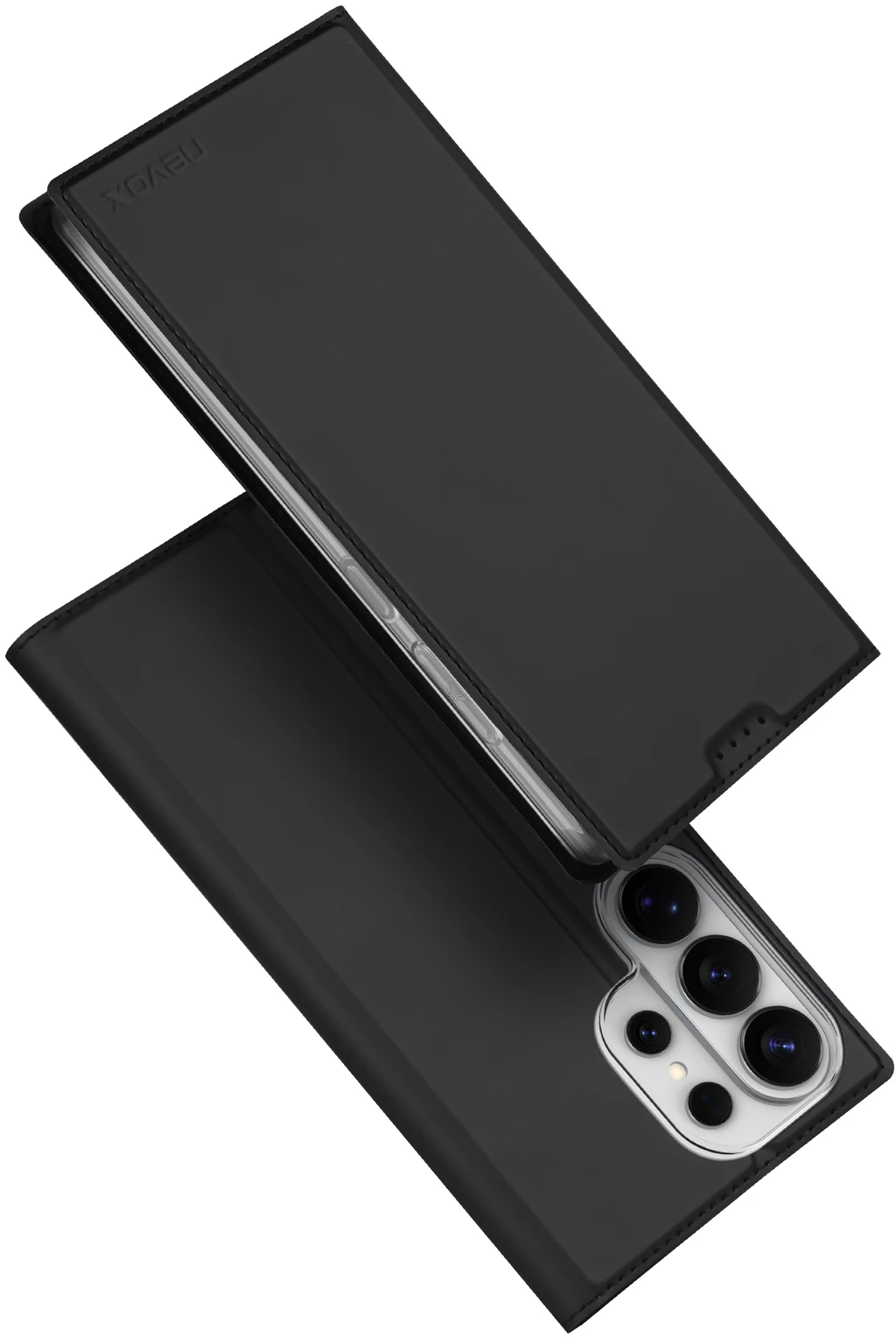 Beim Umklappen der Frontklappe wird diese ebenfalls durch die Magneten auf der Rückseite fixiert, somit ist ein bequemes Telefonieren und Bedienen sichergestellt.